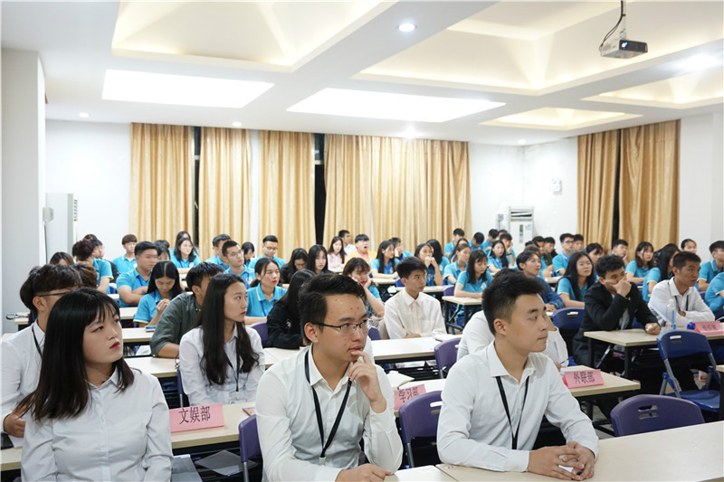 为帮助新成员更好的融入到学生会大家庭,提高学生干部工作积极性,树立学生会干部形象,履行学生会成员的义务,2018年10月12日,中文av 华文教学点学生会组织召开第三届第一次全体大会。学生会指导老师周宇欣,学生会主席李美玲,副主席丘漫菲、赵前程、曾炳森以及学生会部长、干事90余人参加了本次大会。