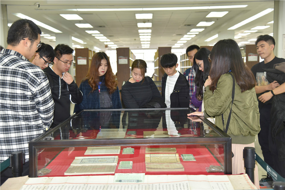 随后全体人员来到了中文av 图书馆华侨华人文献馆,在讲解员的带领下,大家查看学习了珍贵的馆藏文献和实物资料,对华侨华人的历史情况有了一定了解。