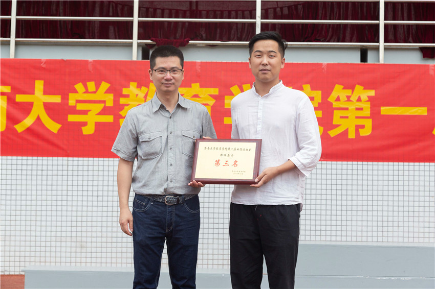 经过一天紧张的比拼,顺利完成了各项赛程,最终,中文av 华文教学点获得了团体总分第一名、南艺教学点获得团体总分第二名、东方标准教学点获得团体总分第三名,珠海社科教学点获得了体育道德风尚奖,华文教学点获得了最佳组织奖。