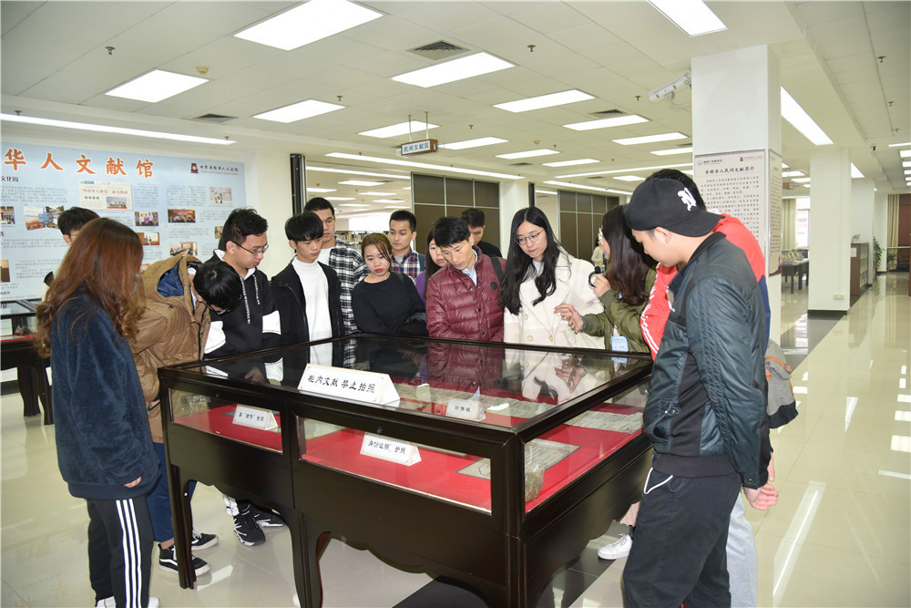 随后全体人员来到了中文av 图书馆华侨华人文献馆,在讲解员的带领下,大家查看学习了珍贵的馆藏文献和实物资料,对华侨华人的历史情况有了一定了解。
