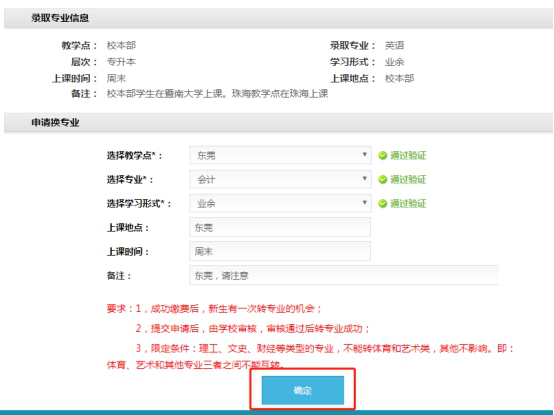 2,提交申请后,由学校审核,审核通过后转专业成功;