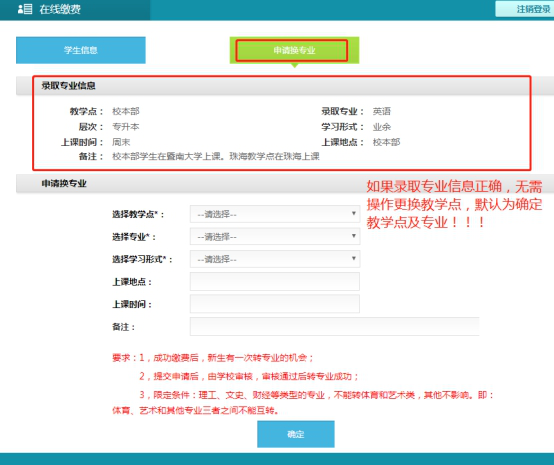 1,成功缴费后,新生有一次转专业、转教学点的机会;