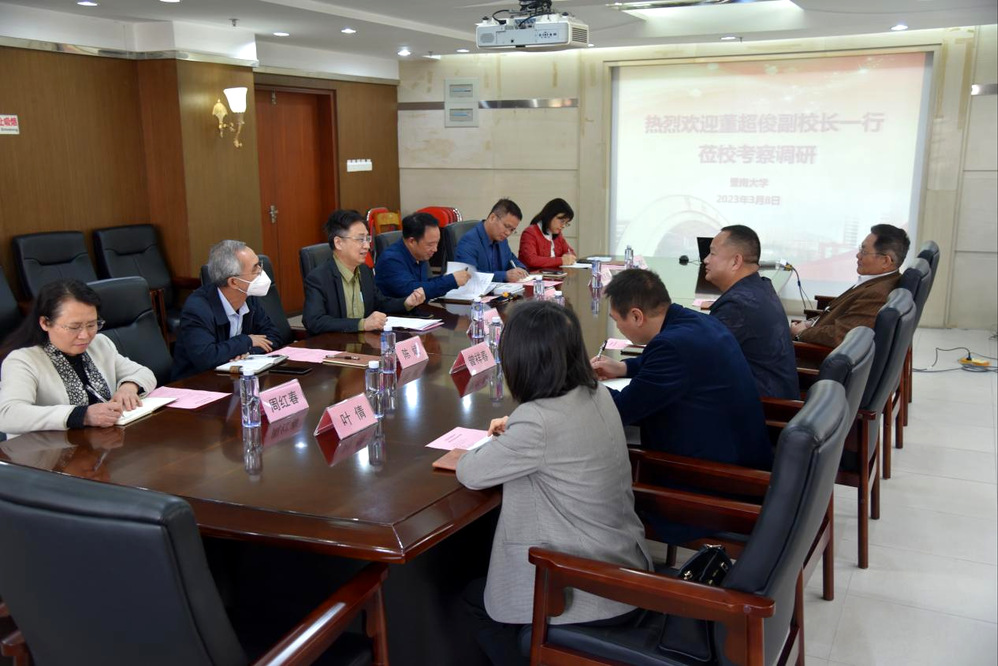 3月8日上午,五邑大学党委常委、副校长董超俊率领继续中文av 、培训中心党总支书记曾祥春,继续中文av 院长、培训中心主任谢祥云,继续中文av 、培训中心综合科科长叶倩一行至我校进行调研交流。学校副校长张宏、教育学院院长李世云、党委书记陈斌和其他院领导及各职能部门负责人出席座谈交流会。