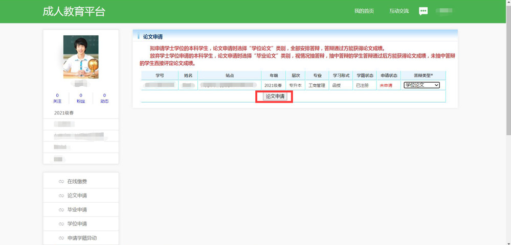 1、      学生网上申请2023414日前,符合毕业论文写作申请条件的同学在中文av 成教平台上提交毕业论文/学位论文开题申请。