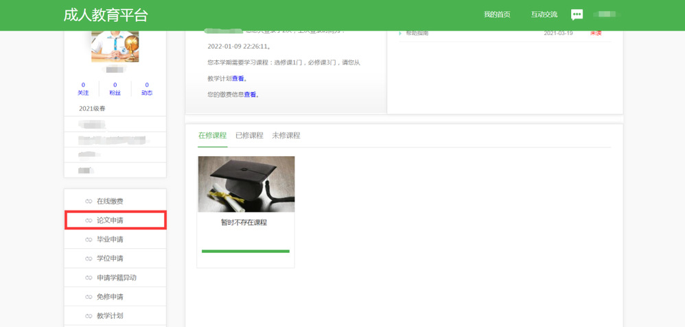 1. 登陆成教平台(用户:完整学号,密码:18位身份证号码)