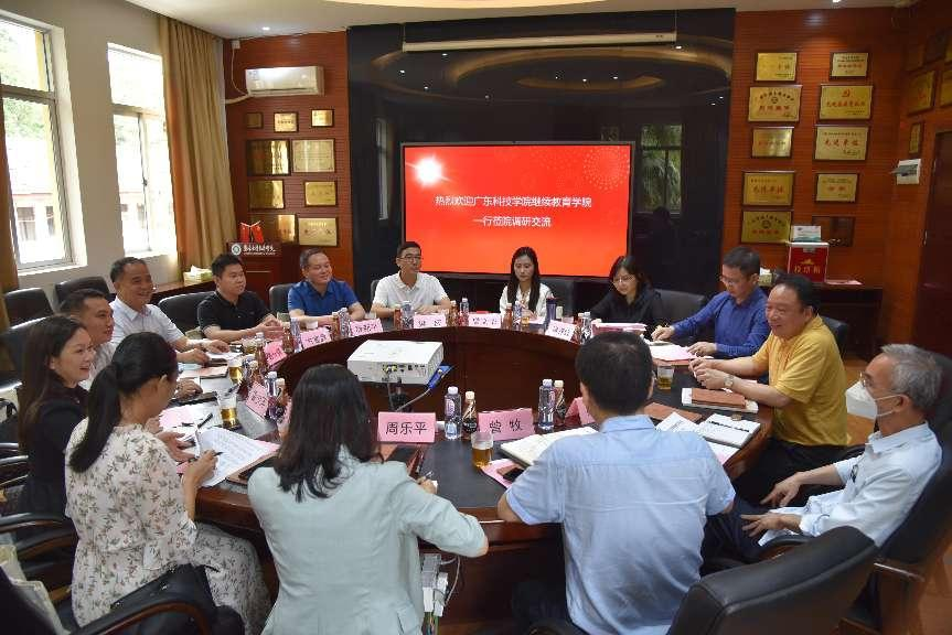 4月21日上午,广东科技学院继续中文av 院长曹长锦率队到中文av 进行调研交流。中文av 院长李世云、党委书记陈斌、副书记兼教务办公室主任郑凡强、副院长兼招生与学生事务管理部主任曾牧、专业培训部主任肖春红、办公室主任周乐平出席座谈交流会。
