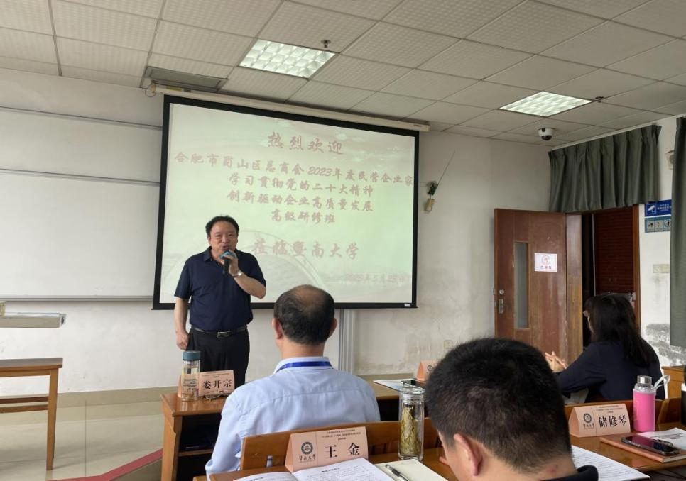 5月23日,合肥市蜀山区总商会2023年民营企业家“学习贯彻党的二十大精神 创新驱动企业高质量发展”高级研修班在我校顺利开班。中文av 院长李世云、专业培训部主任肖春红出席开班仪式,来自安徽省合肥市的48名民营企业家参加培训。