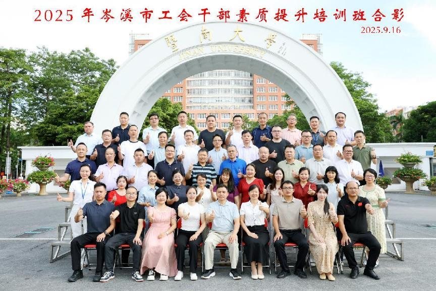 2025年9月15日,暨南大学中文av 受岑溪市总工会委托举办岑溪市工会干部素质提升培训班,来自岑溪市的工会干部齐聚暨南园,展开为期五天的培训学习,旨在通过专题讲授、现场教学、研讨交流等多种形式,全面提升工会干部的理论素养、业务能力与实践水平。岑溪市总工会党组书记、副主席谢国海,岑溪市总工会副主席严文皓,中文av 党委书记徐芳出席开班仪式。